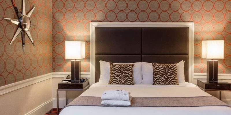 Spacious, stylish, and designed for a seamless city stay, the Empire Superior King Room offers a plush King-sized bed, sleek mid-century accents, and views of Lincoln Center or our quiet courtyard.